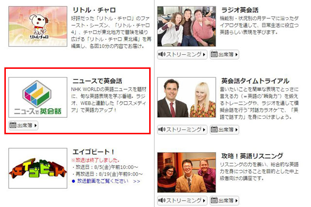 - NHKで放送している語学番組のテレビ&ラジオ放送が数日~数ヶ月遅れで聞ける&観れるサイトNHK語学。
